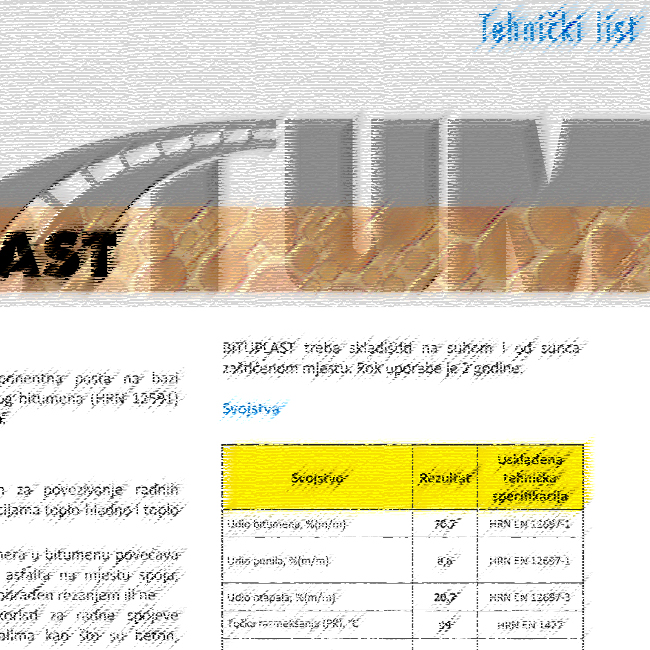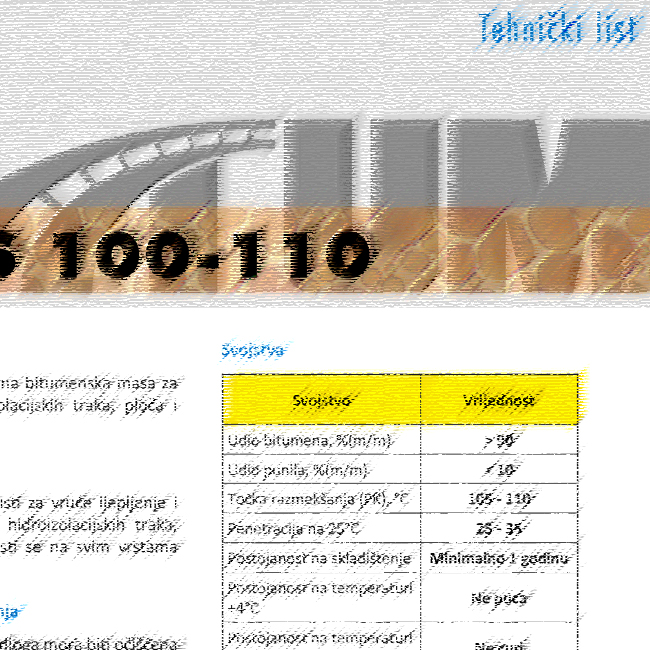 Zalivna bitumenska masa za vruće ljepljenje hidroizolacijkih traka, ploča i drugih elemenata.