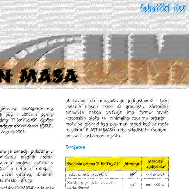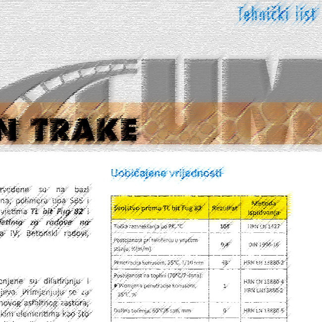 Mješavina cestograđevnog bitumena, polimera i aktivnog punila. Proizvedena je prema uvjetima TL bitFug 82. Namijenjena je dilatiranju i brtvljenju asfaltnih spojeva.